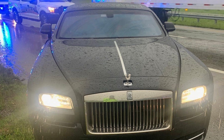 Troopers received a look out bulletin for the car and spotted it on the interstate heading westbound in Marion County traveling at 177 mph. The stolen vehicle passed a Porsche 944 and caused the driver of the Porsche to crash into the rear of the Rolls-Royce. Both vehicles pulled to the shoulder of the interstate at mile marker 127, where two males exited the Rolls-Royce and attempted to physically remove the driver of the Porsche. A semi-automatic pistol was reportedly brandished by one of the suspects during the altercation. Law enforcement stopped and apprehended the aggressors.