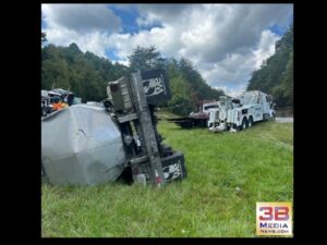 The crash happened around 7 a.m. when the driver of the 1997 Peterbilt, 36-year-old Karl Traughber of Tennessee, told troopers a pickup truck sideswiped his tractor-trailer forcing him off the interstate. Traughber overcorrected and overturned. The driver of the pickup truck did not stop.