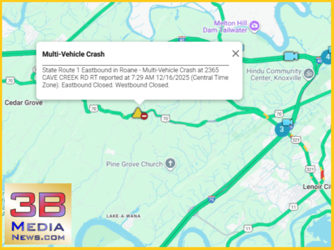 On December 16, 2025, a multi-vehicle crash occurred on State Route 1 eastbound in Roane County, Tennessee, near the area of 2365 Cave Creek Road