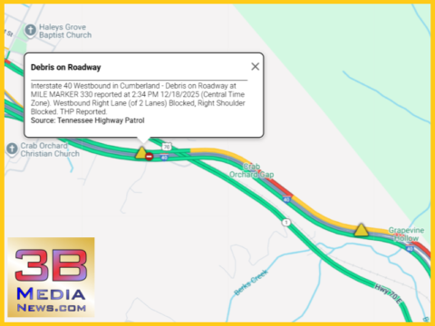 On December 18, 2025, Interstate 40 westbound in Cumberland County has two significant disruptions reported by the Tennessee Highway Patrol. Earlier in the afternoon, at