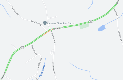 An accident involving a single vehicle that has struck a utility pole is causing delays at the intersection of Lantana Road and Vandever Road. Please use caution in the area as emergency crews work to clear the scene.