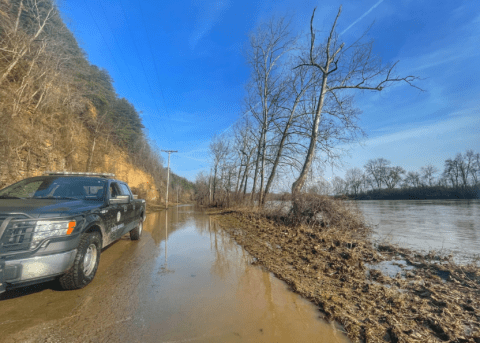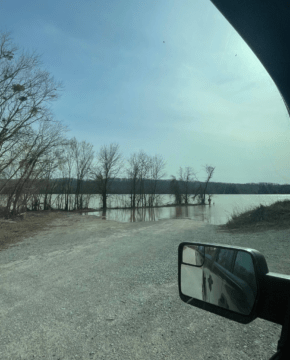 These photos were taken on Paint Rock Rd in New Johnsonville, where floodwaters have overtaken parts of the roadway. The gravel parking lot shown is actually a boat ramp on TN National, which is also underwater.Water levels are at their peak, but conditions remain dangerous. Flooded roads can be deeper and stronger than they appear—it only takes a few inches of water to sweep a vehicle away!