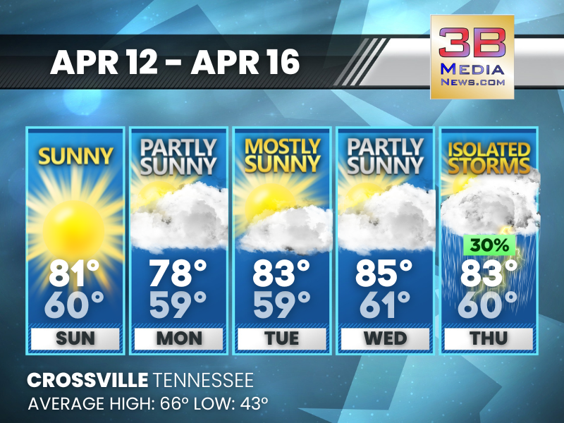 Weather information is provided by the National Weather Service in Nashville and Morristown. You can hear the latest forecast on 105.7 The Hog, 94.1 The Vibe (1410 AM), Spirit 101.9, 98.9 The Wolf, and 93.3 The Ranch (580 AM). Stay connected with Weather Reporter Johnny Caudle on social media by following him on Facebook, X, Instagram, Bluesky, and YouTube. You can also click here to send him an email.