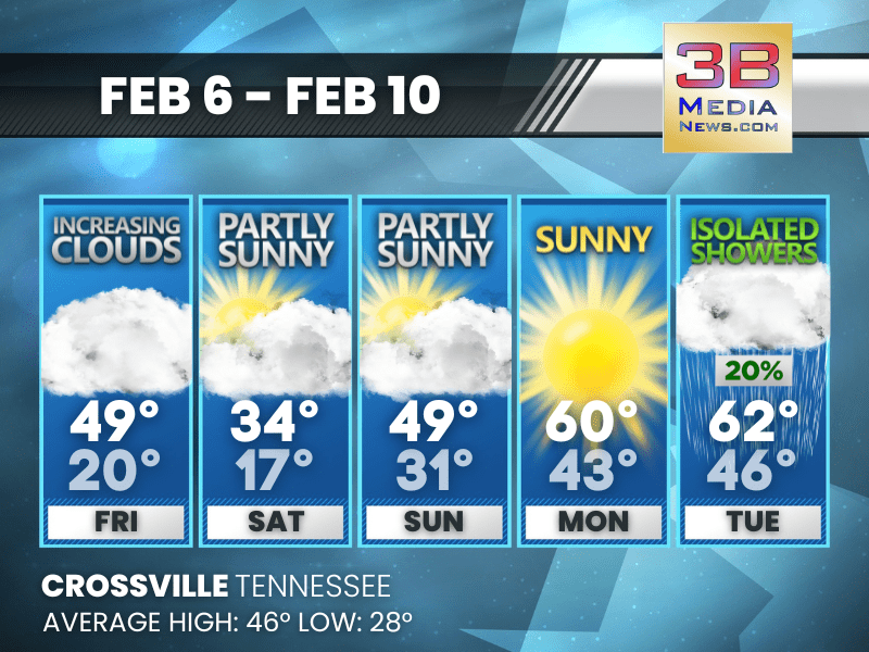 Weather information is provided by the National Weather Service in Nashville and Morristown. You can hear the latest forecast on 105.7 The Hog, 94.1 The Vibe (1410 AM), Spirit 101.9, 98.9 The Wolf, and 93.3 The Ranch (580 AM). Stay connected with Weather Reporter Johnny Caudle on social media by following him on Facebook, X, Instagram, Bluesky, Mastodon, TikTok, YouTube, and Threads. You can also click here to send him an email.