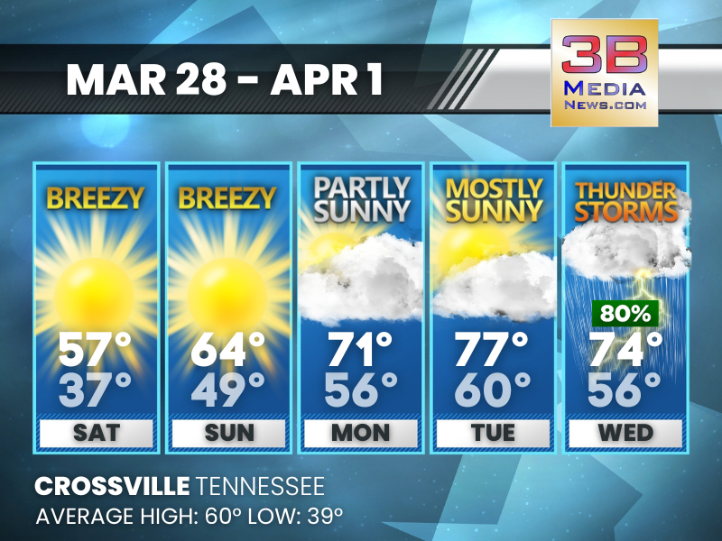 Weather information is provided by the National Weather Service in Nashville and Morristown. You can hear the latest forecast on 105.7 The Hog, 94.1 The Vibe (1410 AM), Spirit 101.9, 98.9 The Wolf, and 93.3 The Ranch (580 AM). Stay connected with Weather Reporter Johnny Caudle on social media by following him on Facebook, X, Instagram, Bluesky, and YouTube. You can also click here to send him an email.