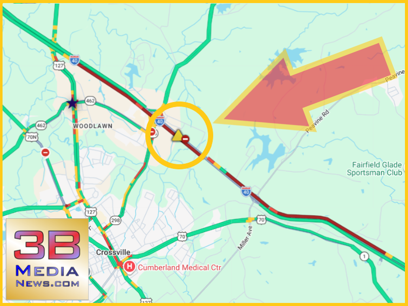A multi-vehicle crash occurred on Thursday, April 23, 2026, at around 3:29 PM CT on Interstate 40 near mile marker 320 in Cumberland County, Tennessee (close to Crossville).